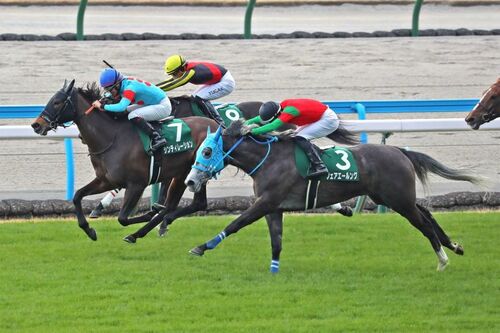 写真提供JRA 2025小倉牝馬S(GV)フェアエールング、シンティレーション※同着